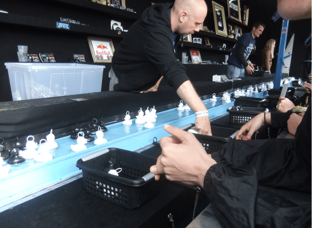 While the festival did have an incentive for attendees to collect 20 cups to have a go at the Ducks of Thrash (see below) where you would win merchandise or tokens for the rides, the site was still trashed with plastic.